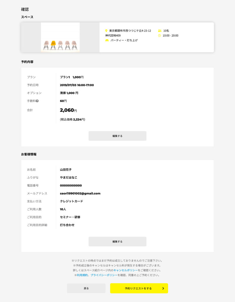 予約タイプが「予約リクエスト」の場合は、ホスト(スペースホスト)が承認するまでは予約完了となりません。予約が承認されますと通知メールが配信されます。