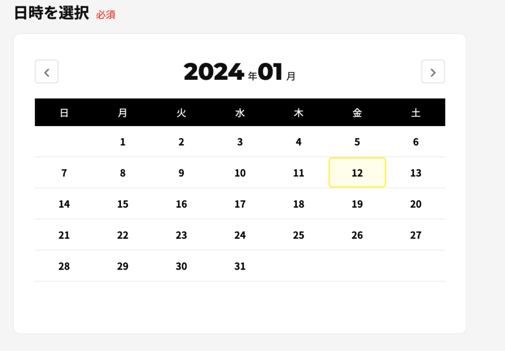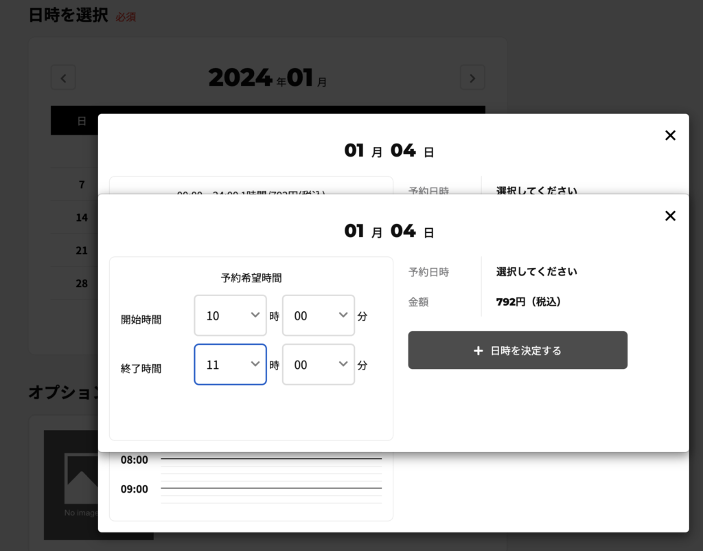 ご希望の日にち、時間を選択し、「日時を決定する」ボタンを押してください。